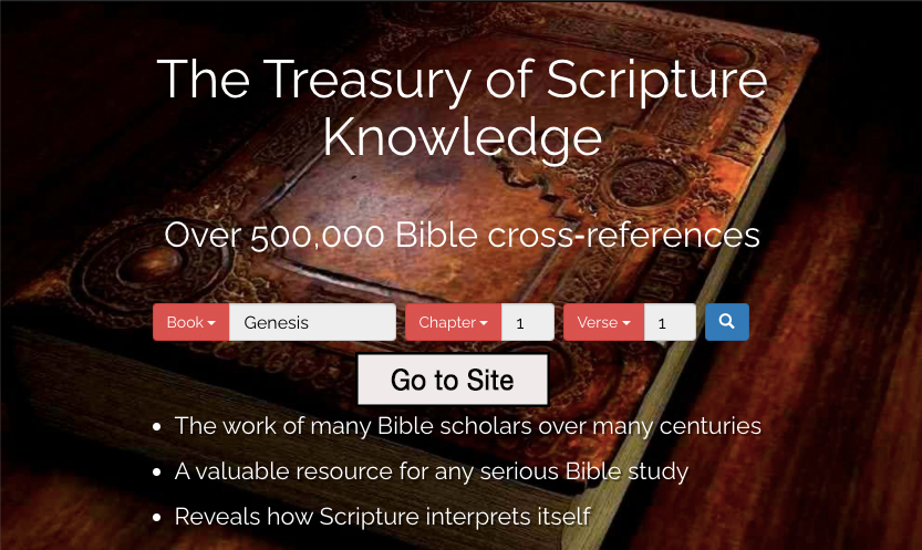 We would like to introduce you to two tools that will assist you: Bible Gateway and Treasury of Scripture Knowledge.